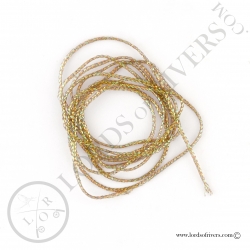 Very narrow braided ribbon, about 1.5 mm wide (0.059 inche), with iridescent shine.