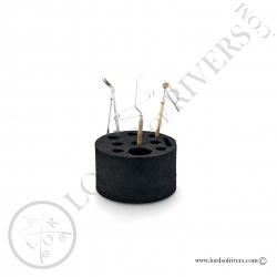 Organiseur d'outils rond en mousse douce, dense et durable. Léger à transporter. Espaces de rangement pour les vernis et colles, égaliseurs de poils, aiguilles, portes bobines, brosses a dubbing, finisseurs de noeuds etc... Ce porte-outils ne glissera pas sur votre table de montage, nous aimons la façon dont il aide à garder les outils en ordre et à portée de main.