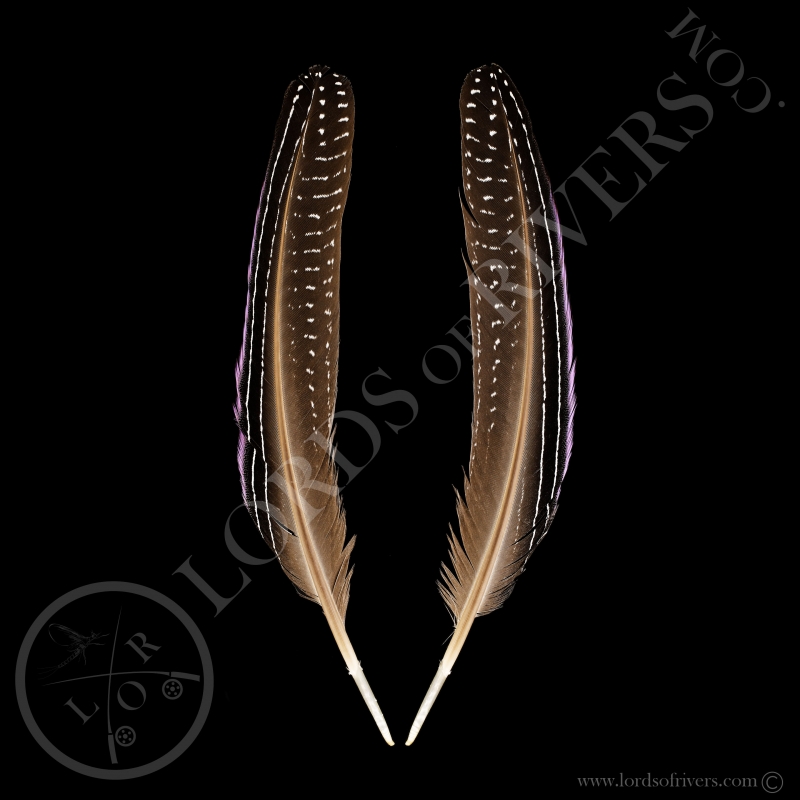 Les plumes du corps ont Lilas avec des taches blanches entourées de noir elles font de superbes ailes sur les mouches à Saumon ,la couleur Lilas faisant toute la différence.