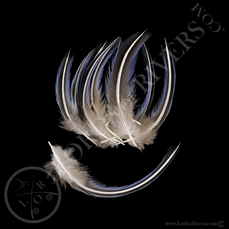 Les plumes de flanc bleu cobalt sont excellentes pour les gorges, ou en enroulements tels des hackles et les colliers sur les saumons et les mouches à Stealhead ou les mouches de mer.